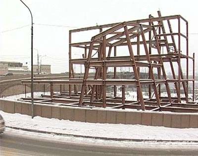 Чиновники объяснили, что металлический каркас, который вот уже третий год портит вид у Коммунального моста, ни сносить, ни достраивать пока не будут.