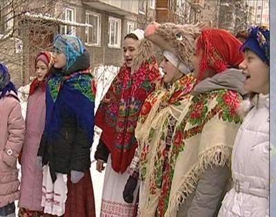 Ряженые - школьники и пенсионеры - ходили по домам, исполняли старинные песни, частушки и танцевали. За это гостеприимные горожане угощали их баранками, пирогами и разносолами.