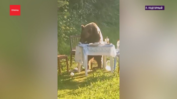 Медведь украл ужин у дачников в посёлке Подгорный. Садоводы устроили пикник на природе, но в планы вмешался косолапый и явно незваный гость. Он отогнал людей от общего стола и приступил к дегустации.