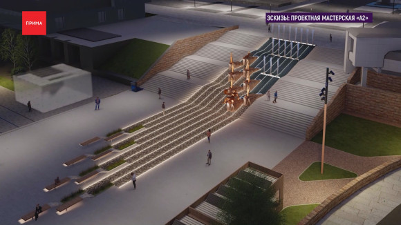 Победителем аукциона стала фирма «Гуриати». Она сейчас строит элитную восьмиэтажку на территории старинной больницы на Вейнбаума. Начальная цена контракта была больше 170 миллионов рублей, но компания выставила самую низкую цену — на 20 миллионов меньше. Напомню, каскадная конструкция появилась в 2005 году, а в 2008 скульптуры добавили Енисей и сибирские реки. За годы фонтан сильно обветшал, и его закрыли на ремонт. За проект голосовали красноярцы, и вот так выглядит обновлённый вариант «Рек Сибири». В верхней чаше — шар из прозрачного стекловолокна с металлическими обручами — они обозначают экватор и нулевой меридиан. Облицовка будет из серого гранита, а подпорная стена — из красного. Подсветку смонтируют как для струй, так и для поручней лестницы. Работы будут идти и зимой, а завершить их подрядчик должен к концу августа 2026 года.