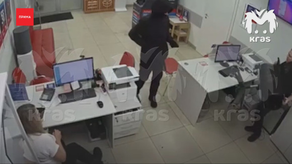 Одна из сотрудниц банка уже начала защищаться стулом, но, к счастью, грабитель оказался без серьезного настроя. Буквально за 10 секунд женщины убедили его, что денег в отделении нет. Мужчина развернулся и ушел. Кадры с камер уже в полиции. Несостоявшегося налетчика ищут.