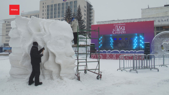 Театральная площадь Красноярска превращается в галерею зимних скульптур. Там идёт подготовка уже к 10-му фестивалю «Волшебный лёд Сибири». Прямо в эти минуты творцы на морозе вырезают фигуры из снега и льда. За их работой наблюдал Евгений Назарчук.