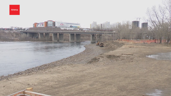 Это территория с видом на Октябрьский мост — рядом Олимпийская аллея и закрытый пляжный комплекс. Берег начал осыпаться в 2023 году. Дабы остановить дальнейшее разрушение, нашли подрядчика для укрепления. Летом прошлого года он начал работы на участке длиной в 315 метров. С берега демонтировали аварийную лестницу — обычно красноярцы спускались по ней, чтобы покормить уток. Сейчас готов первый слой — отсыпка камнем. Полностью завершить работы должны к августу.
