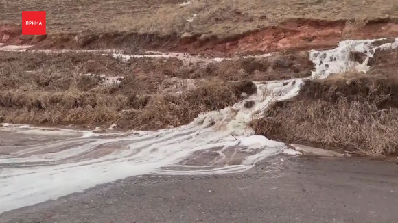 Размывает дорогу и холмы: жители поселка «Монамур» в Дрокино делятся видео, как их топит талыми водами.