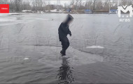 Дети катаются на льду Абаканской протоки за лайки в соцсетях