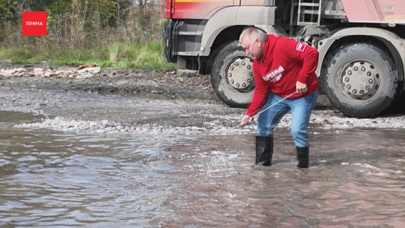 Осложняют ситуацию дожди. После них поездка по этой дороге превращается в шоу «Интуиция», горько шутят автовладельцы: не знаешь, в каком месте и насколько глубоко провалишься. Сегодня сюда выехали общественники из Народного фронта. Взяли с собой рулетки и измерили глубину выбоин. Вердикт однозначный — дорога в ужасном состоянии.