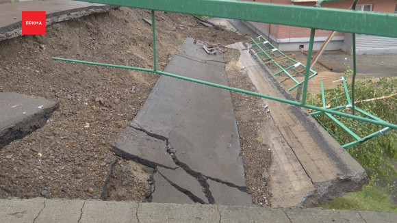 Трудности с передвижением оказались меньшим из зол. В Солнечном из-за хлынувшего потока воды не выдержала подпорная стена. Обрушение произошло между домами 56 и 58 по улицу 60 лет Образования СССР. Обошлось без пострадавших — стена была аварийной, а потому еще месяц назад ее огородили. Но укрепить не успели. За что исполняющий обязанности главы города сегодня получил представление от прокуратуры. В ближайшее время на месте подпорной стены установят габионную сетку — отчитываются в мэрии и оправдываются: только за ночь выпала почти половина месячной нормы осадков. Это от 21 до 28 миллиметров в зависимости от района.