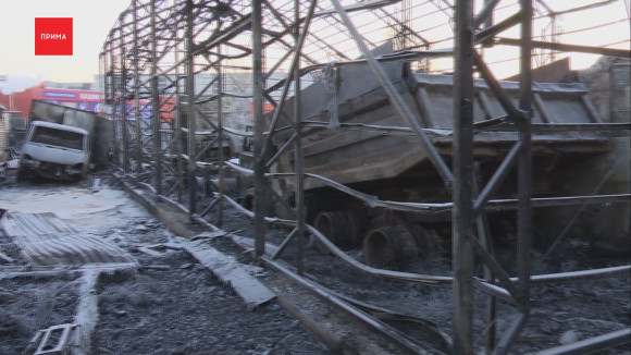 В итоге вспыхнули 4 грузовика. С одиннадцати вечера и почти до трёх ночи более 20 пожарных боролись с огнём. От бокса в 850 квадратов не осталось почти ничего — только скелет строения. Там же — обугленные кабины тягачей. По данным пресс‑службы МЧС, люди не пострадали, а в причинах возгорания разбираются дознаватели. Отмечу, что это большой корпус: в нём располагались 5 компаний. Остальные здания уцелели только благодаря работе пожарных, отметили сегодня соседи погорельцев.