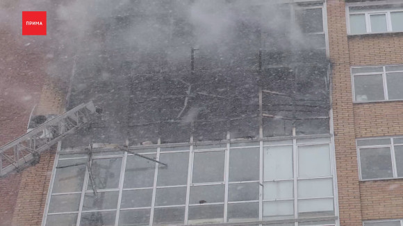 До черноты выгорел балкон в кирпичной 18‑этажке в Студгородке. Огонь оплавил и соседние лоджии. На 10‑й этаж, где находилась загоревшаяся квартира, спасателям пришлось подниматься по выдвижной лестнице.