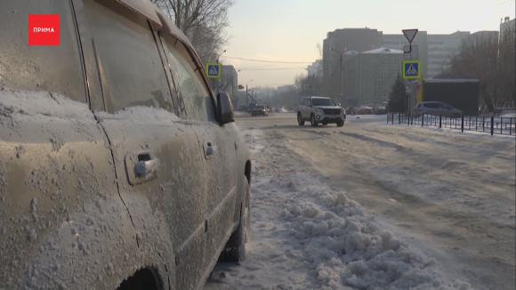 Вода разлилась по дороге и образовала на морозе ледяную дымящуюся кашу. Автомобилистам приходится её объезжать по встречной полосе. Сильнее всего досталось припаркованной на обочине иномарке. Она буквально вмёрзла колёсами в лёд, а на её кузове заледенели брызги от проезжающих мимо машин. Не лучше и пешеходам. Тротуар покрылся тонкой коркой льда, да так, что по нему опасаются ходить пешеходы.