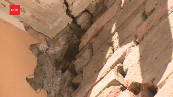 — Казалось бы, стандартная для нашего города двухэтажка, даже фасад недавно отремонтировали. Но если хорошо приглядеться, можно увидеть, почему дом признан аварийным и требует расселения. У него большой крен и по стенам идут трещины, от которых лопаются стеклопакеты у людей.