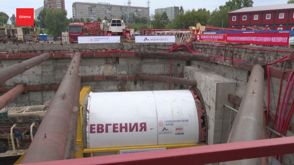 — «Евгения» начала проходку. Через некоторое время щит вместе с надписью скроется под землей. Комплексу предстоит пройти 2 км 640 метров за несколько месяцев.