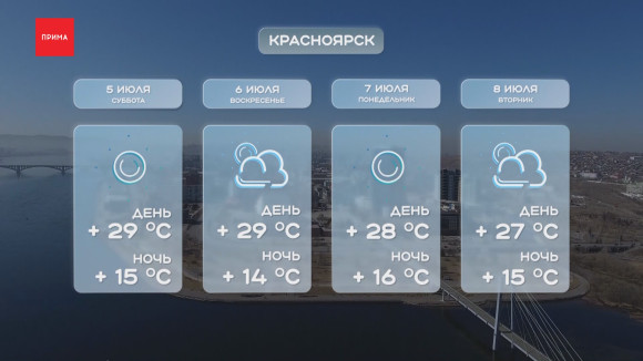Предстоящей ночью облачно и прохладные +15. Но уже завтра днём небо станет чистым, выглянет солнце, а воздух прогреется до +29 градусов. В ночь на воскресенье +14. Последний день этой недели станет по-настоящему жарким. Синоптики обещают почти полную безоблачность, осадков тоже не будет, воздух прогреется до +29. Такая же погода будет и в начале следующей недели. По ночам +14 +16, а в светлое время суток почти 30 градусов жары.