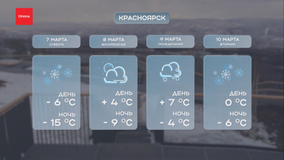 Так, утро первой субботы марта начнётся с морозных −15 °C. Гарантирован мелкий снег, но выглянет и солнце. Днём воздух прогреется до −6 °C, а к ночи снова похолодает — столбики термометров опустятся до отметки −9 °C.
