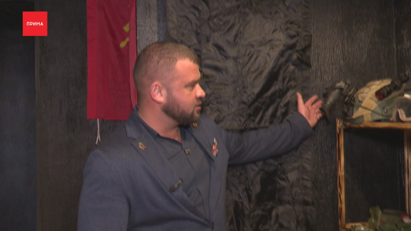 — Они знают, что специальная военная операция началась в 2022-м, но то, что на самом деле основание и начало положили еще в 2013-м, они этого не знают. И наша цель показать, с чего начиналось. Вот, если каску взять, да, то есть простреленную. Почувствовать должен, что это чья-то жизнь. Здесь у нас будет штаб. Мы еще на фоне его наполнения. То есть здесь, в этом штабе, это полевые условия. В целом, на фронте это выглядит именно так.