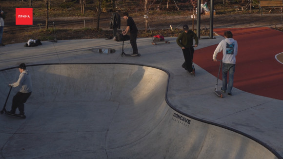 — Здравствуйте, с вами внештатный корреспондент «Прима» Станислав Латынцев на обзоре нового пула в парке Горького. Вкатываемся, едем фронтсайд, делаем бэксайд. Едем по радиусу пула. Достаточно качественный бетон. Ровно залит, ровно отшлифован. Видим яркий пример того, как надо строить скейт‑парки. Шикарный парк, одобрено!