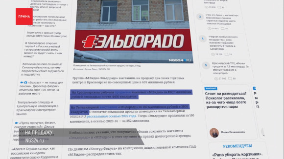 «М.Видео» продает свои магазины на Красрабе и Телевизорной. Две точки обойдутся в 640 миллионов рублей. «М.Видео» продают за 452 миллиона, «Эльдорадо» — за 180. Компания не первый год пытается продать магазины. В объявлениях указано, что покупатель обязан сохранить «Эльдорадо» и «М.Видео» в этих зданиях на правах долгосрочной аренды.