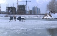 Огромную льдину с рыбаками оторвало от берега и унесло в Енисей