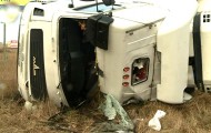 Фура, груженая продуктами, перевернулась прямо на трассе