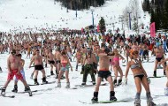 В Шерегеше 700 человек в купальниках скатились с горы